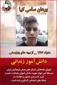 براساس اخبار رسیده به شورای هماهنگی روز ۱۸ دی ماه ماموران لباس شخصی یک نوجوان شانزده ساله به نام برهان سامی کیا را در خیابانی در تهران بازداشت و پس از ده روز به زندان تهران بزرگ منتقل کردند .