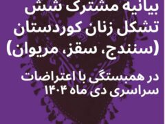 ما جامعه زنان کوردستان روژههلات، قتلعام و سرکوب خشن اعتراضات دیماه ۱۴۰۴، بهویژه سرکوب مردم بیدفاع ایلام و کرماشان را به شدت محکوم میکنیم. این اعتراضات ادامه جنبش «ژن، ژیان،… ادامه مطلب »